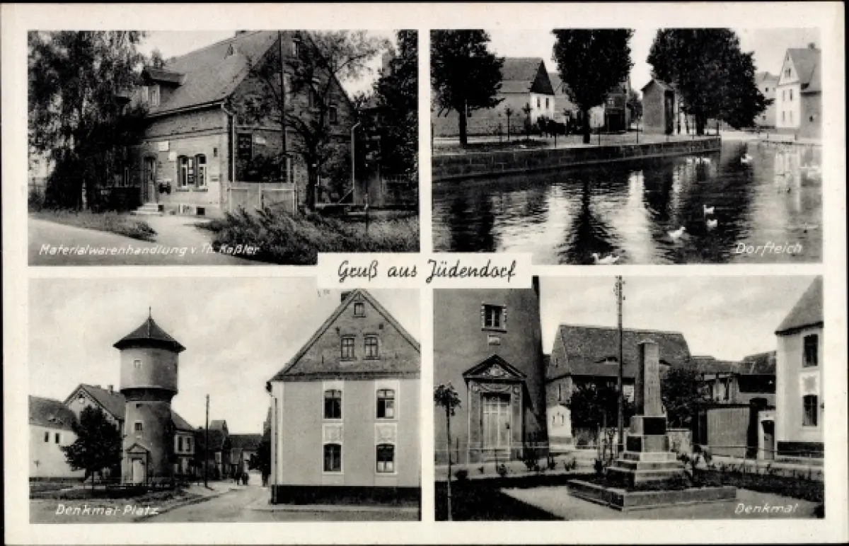 Ak Jüdendorf Steigra, Wasserturm, Denkmalplatz, Denkmal, Dorfteich, Geschäft Kaßler