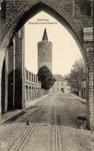 Ak Jüterbog in Brandenburg, Blick durch das Dammtor
