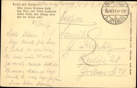 Zustand, siehe Scan, gelaufen, 1917 - ca 14 cm X 9 cm