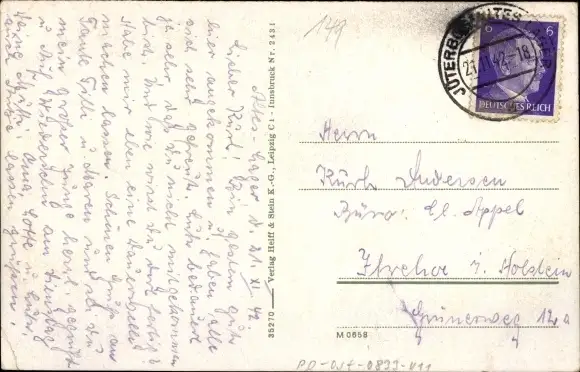 Zustand, siehe Scan, gelaufen, 1942 - ca 14 cm X 9 cm
