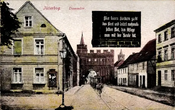 Ak Jüterbog in Brandenburg, Dammtor, Pferdebahn