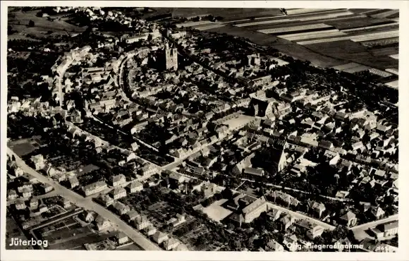 Ak Jüterbog in Brandenburg, Luftaufnahme von viele Häuser, ländliche Umgebung