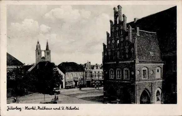 Ak Jüterbog in Brandenburg, Markt, Rathaus, St. Nikolai