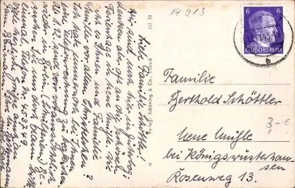 Zustand, siehe Scan, gelaufen, 1943 - ca 14 cm X 9 cm