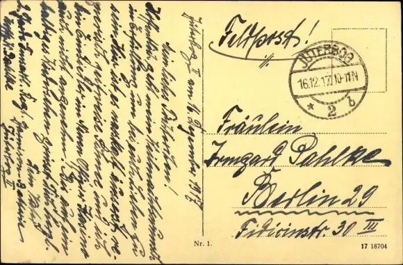 Zustand, siehe Scan, gelaufen, 1917 - ca 14 cm X 9 cm
