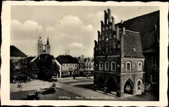 Ak Jüterbog in Brandenburg, Rathaus, Kirche St. Nikolai