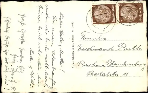 Zustand, siehe Scan, gelaufen, 1940 - ca 14 cm X 9 cm