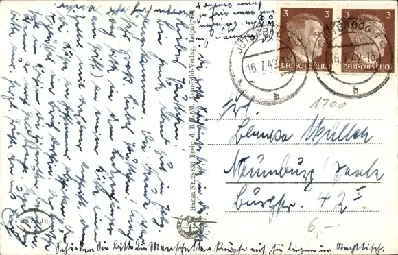 Zustand, siehe Scan, gelaufen, 1942 - ca 14 cm X 9 cm