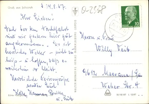 Zustand, siehe Scan, gelaufen, 1967 - ca 15 cm X 10 cm