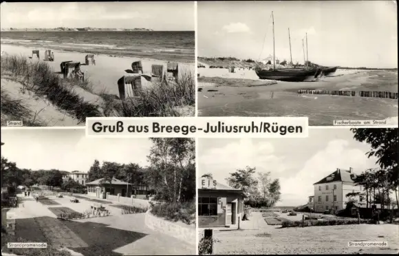 Ak Juliusruh Breege auf Rügen, Strand, Fischerboote, Strandpromenade