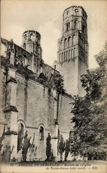 Ak Jumièges Seine Maritime, Abtei, Ruinen der Kirche Notre Dame