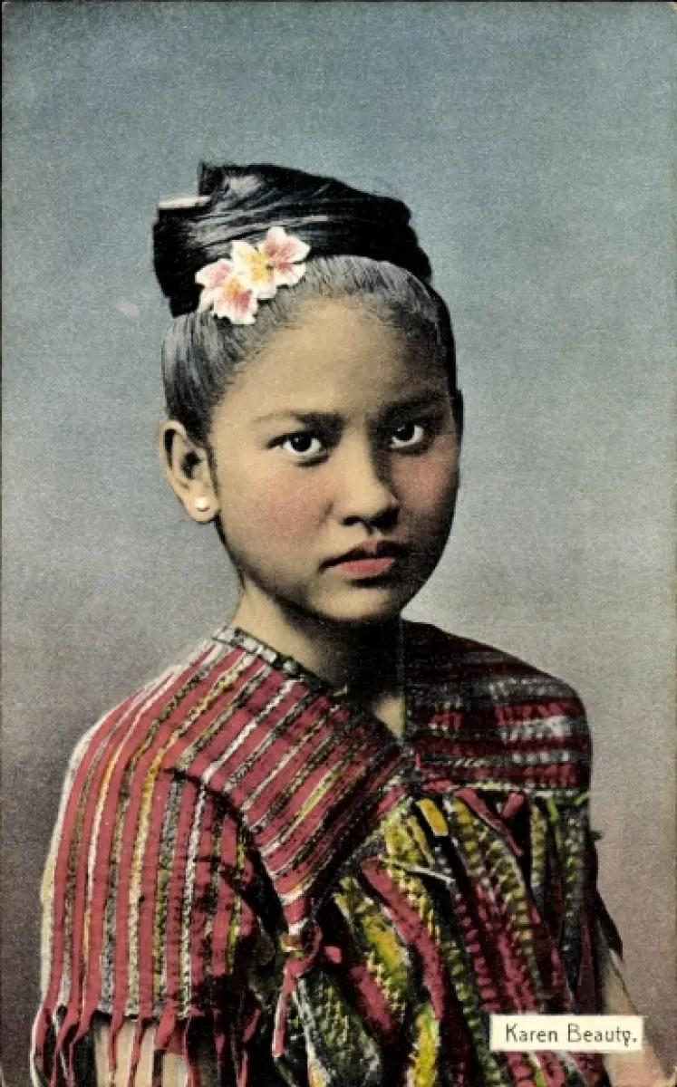 Ak Junge Asiatin in Volkstracht, Porträt