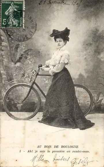 Ak Junge Frau, Portrait, Fahrrad, Hut