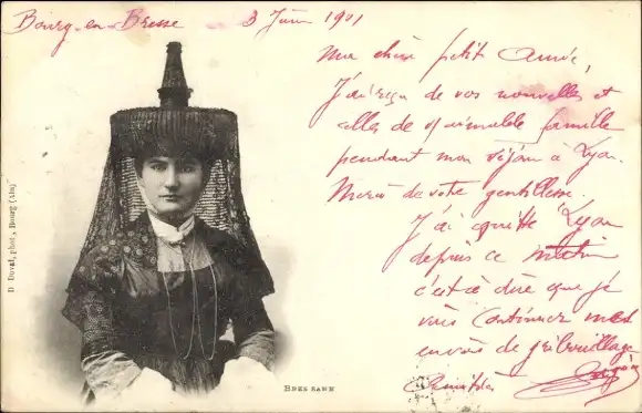 Ak Junge Frau in französischer Tracht, Portrait, Kopfbedeckung