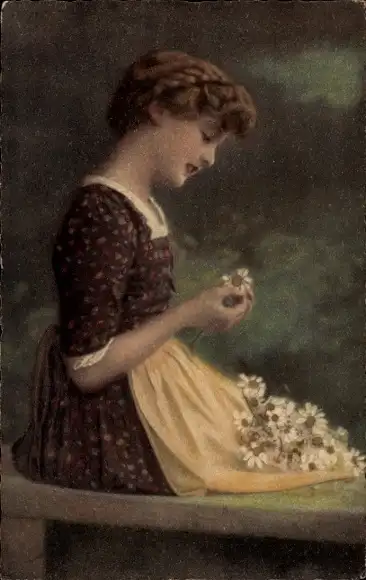 Ak Junge Frau mit Blumen, Gemaltes Porträt