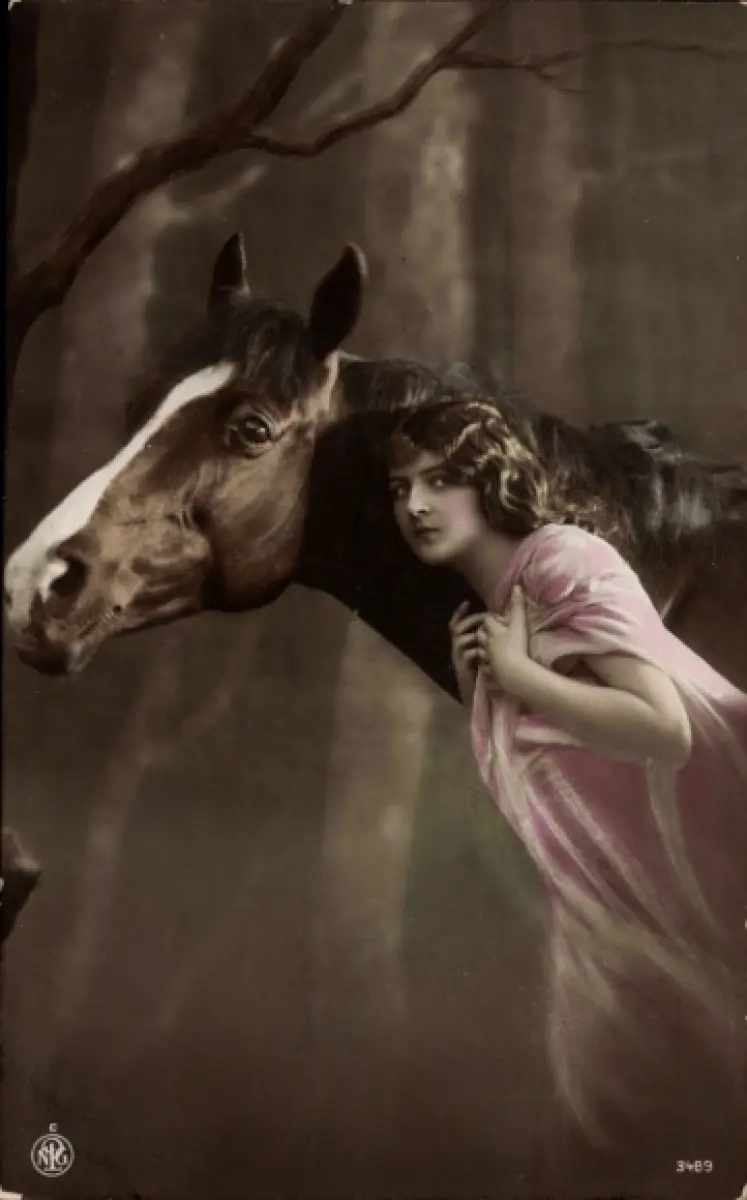 Ak Junge Frau mit einem Pferd, coloriert, NPG 3489
