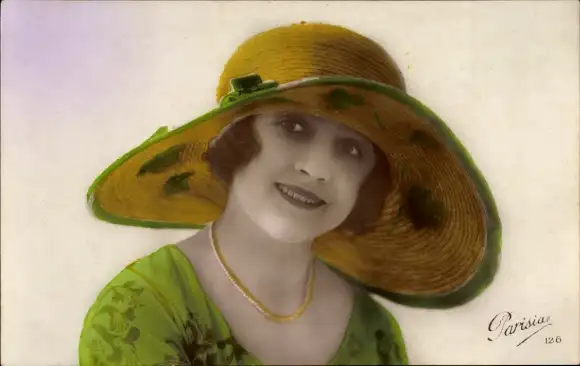 Ak Junge Frau mit einem Strohhut, Portrait, coloriert