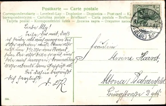 Zustand, siehe Scan, gelaufen, 1907 - ca 14 cm X 9 cm