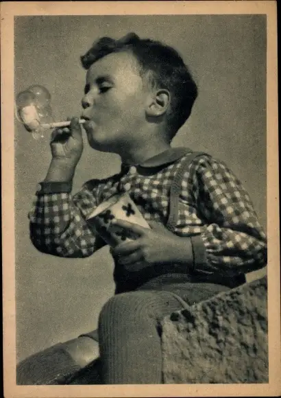 Ak Junge bläst Seifenblasen, Fotograf Thanscheidt Döring, Stöckel
