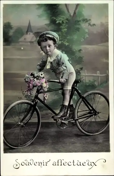Ak Junge fährt Rad, Radfahrer, Kindporträt