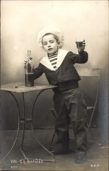 Ak Junge in Matrosenuniform, Portrait, Weinflasche