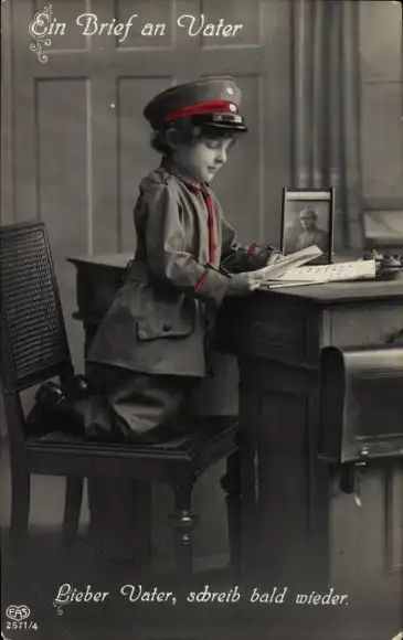 Ak Junge in Uniform, Brief an Vater, Lieber Vater, schreib bald wieder