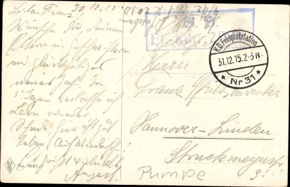 Zustand, siehe Scan, gelaufen, 1915 - ca 9 cm X 14 cm