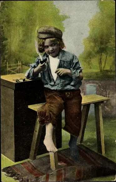 Ak Junge raucht Pfeife
