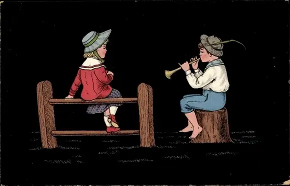 Ak Junge spielt Flöte, Musikinstrument, Kinder