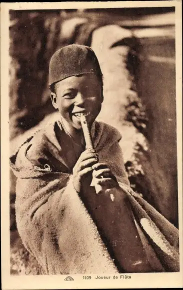 Ak Junger Afrikaner spielt Flöte, Portrait