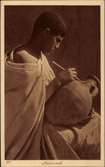 Ak Junger Araber bemalt einen Wasserkrug, Verzierung