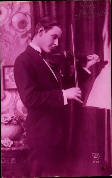 Ak Junger Mann Geige spielend, Anzug, Noten