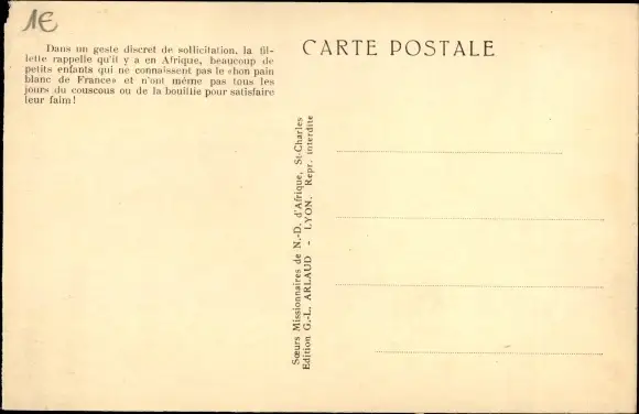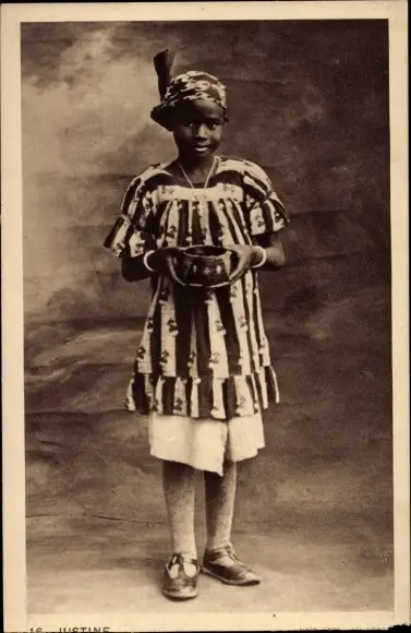 Ak Justine, Junge Afrikanerin in gestreiftem Kleid, Schale in Händen