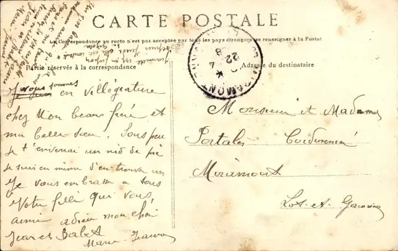 Zustand, siehe Scan, gelaufen, 1908 - ca 14 cm X 9 cm