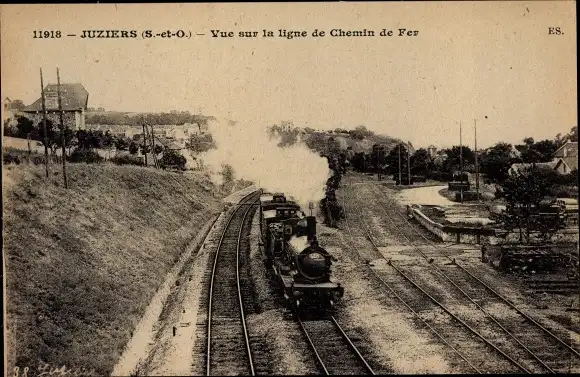 Ak Juziers Yvelines, Vue sur la ligne du Chemin de Fer