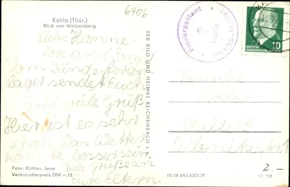 Ak Kahla in Thüringen, Blick vom Walpersberg