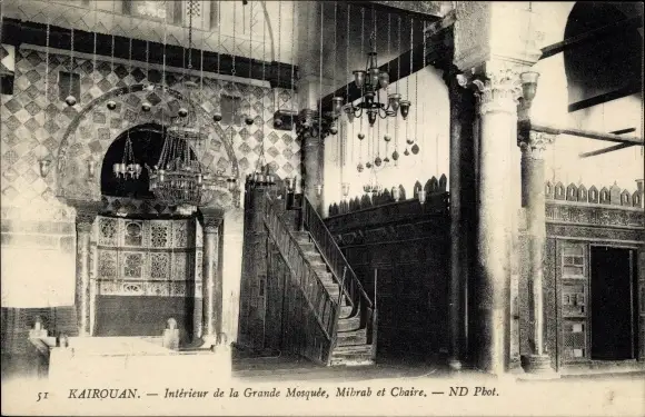 Ak Kairouan Tunesien, Intérieur de la Grande Mosquée, Mihrab et Chaire