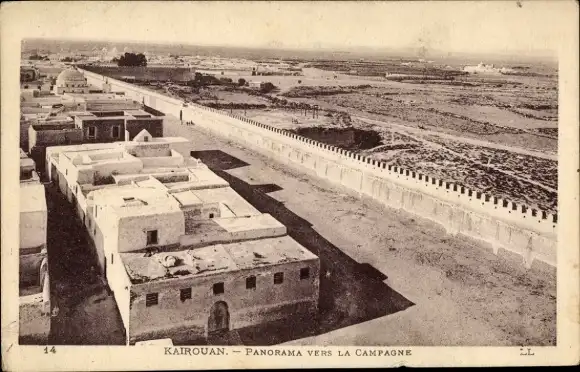 Ak Kairouan Tunesien, Panorama vers la Campagne, Stadtmauer