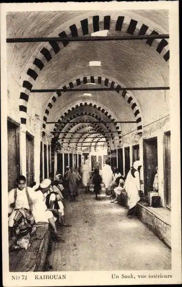 Ak Kairouan Tunesien, Un Souk, vue intérieur, Markthallen