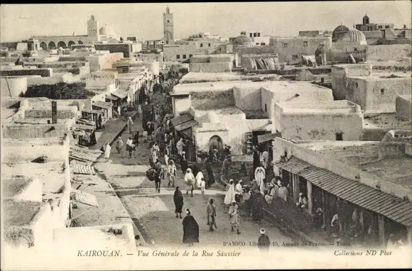 Ak Kairouan Tunesien, Vue générale de la Rue Saussier