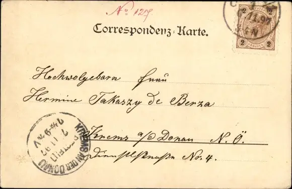 Zustand, siehe Scan, gelaufen, 1897 - ca 14 cm X 9 cm