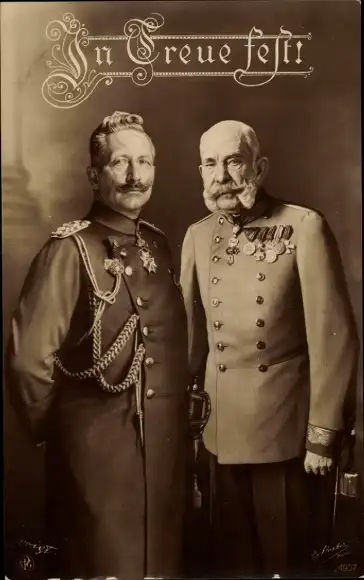 Ak Kaiser Franz Joseph I., Kaiser Wilhelm II., Portrait, Orden, Uniform