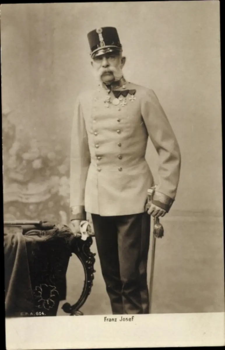 Ak Kaiser Franz Joseph I., Standportrait in Uniform, Orden
