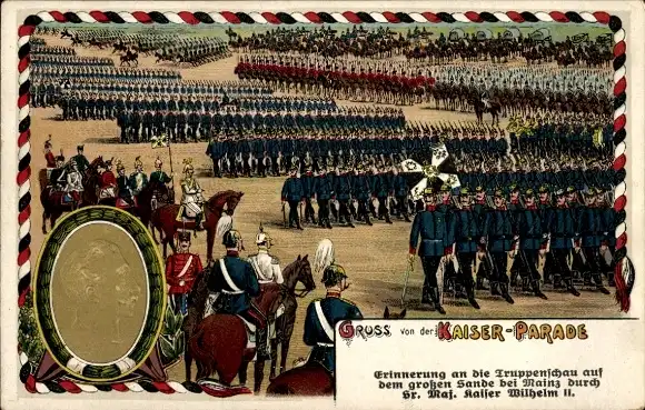 Ak Kaiser-Parade, Sande bei Mainz, Deutsche Soldaten, Kaiser Wilhelm II.
