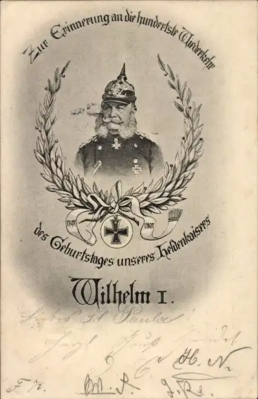 Ak Kaiser Wilhelm I. von Preußen, 100. Geburtstag