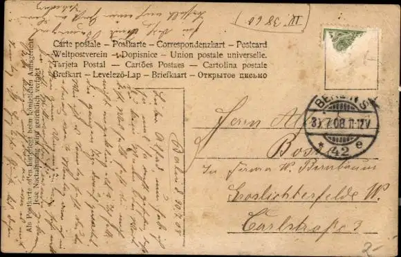 Zustand, siehe Scan, gelaufen, 1908 - ca 5 cm X 3 cm