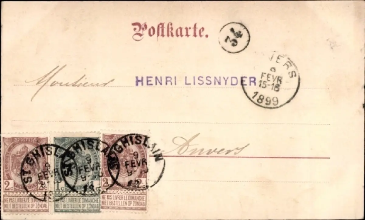 Zustand, siehe Scan, gelaufen, 1899 - ca 15 cm X 9 cm