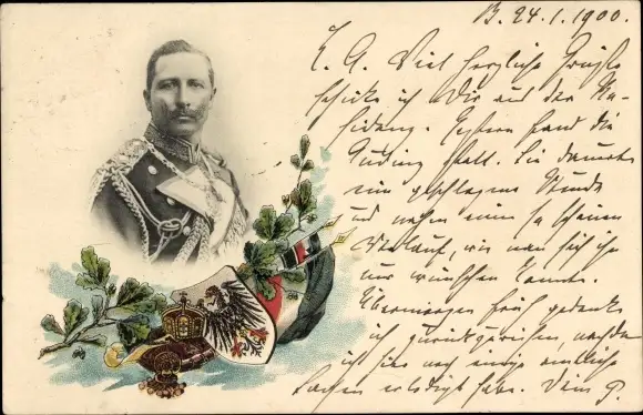 Ak Kaiser Wilhelm II. in Uniform, Wappen, Flaggen, Eichenlaub