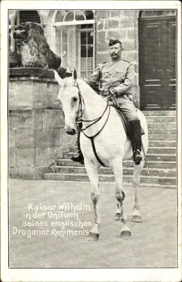 Ak Kaiser Wilhelm II. in der Uniform seines englischen Dragoner Regiments, Pferd