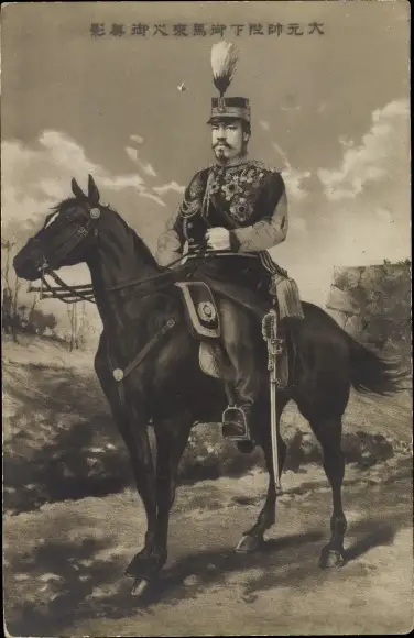 Ak Kaiser Yoshihito von Japan auf einem Pferd, Tenno